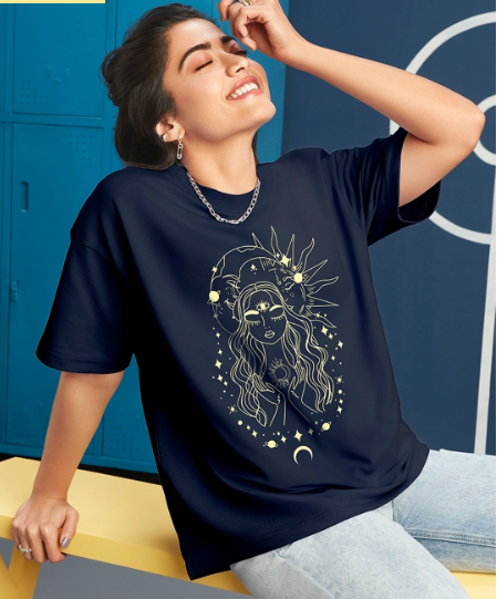Women’s Blue Stardust Soul Graphic Printed Oversized T-shirt